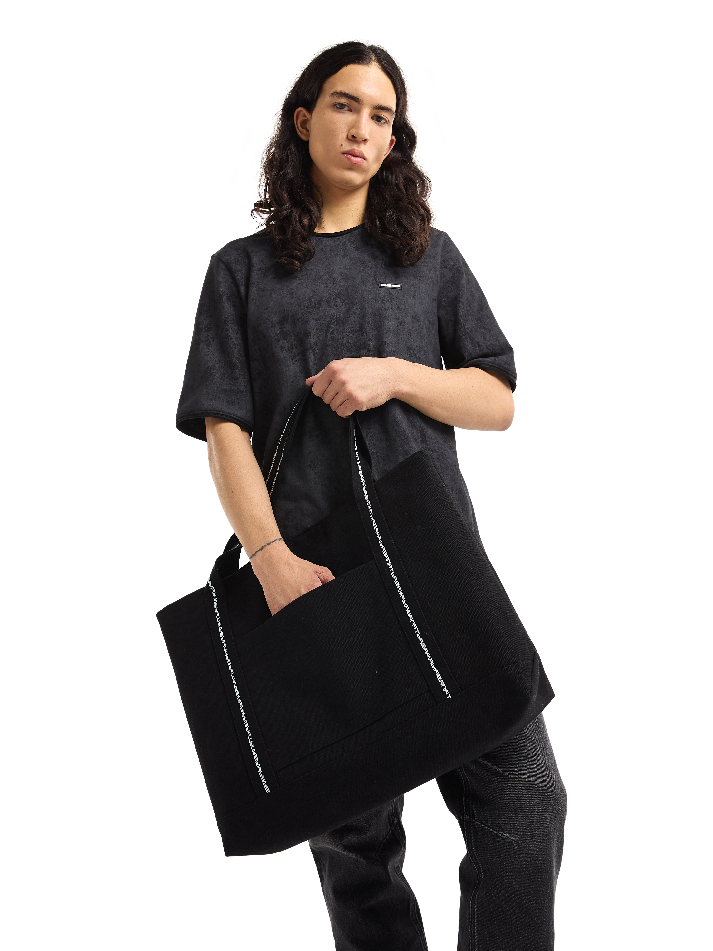 Сумка-мешок с внутренними отделениями на молнии и дополнительными горизонтальными брендированными ручками. Черная. 100% полиэстер. 290 грамм.