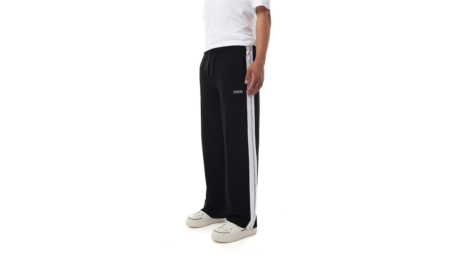 Трикотажные брюки с принтованными лампасами, боковыми карманами и отстроченными стрелками. Черный. Мидлфит. Черный. Состав материала: 50% модал, 45% полиэстер, 5% эластан, 250 грамм.