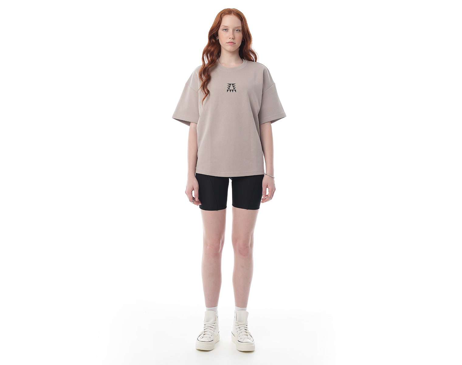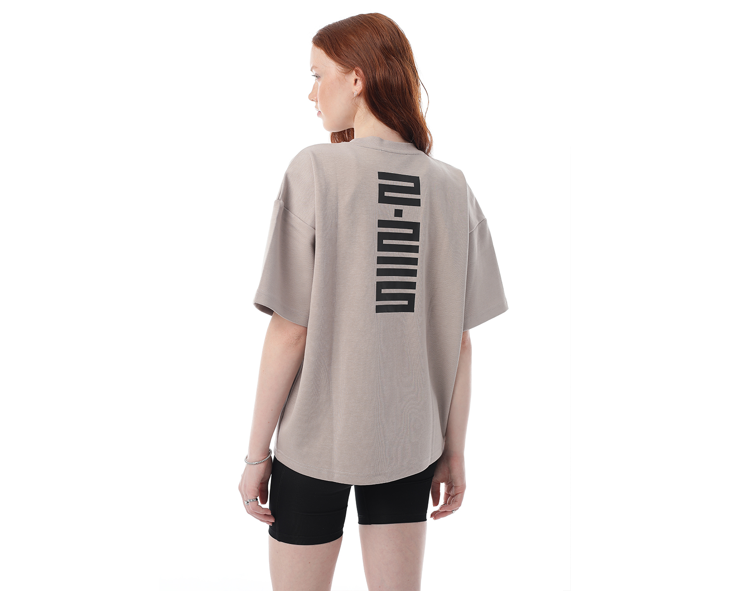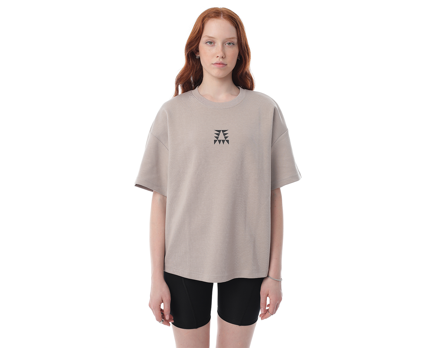 Футболка. Серо-бежевая. Посадка оверсайз. 85% хлопок 15% полиэстер, плотность 180 грамм. Модель декорирована печатью в технике DTF.