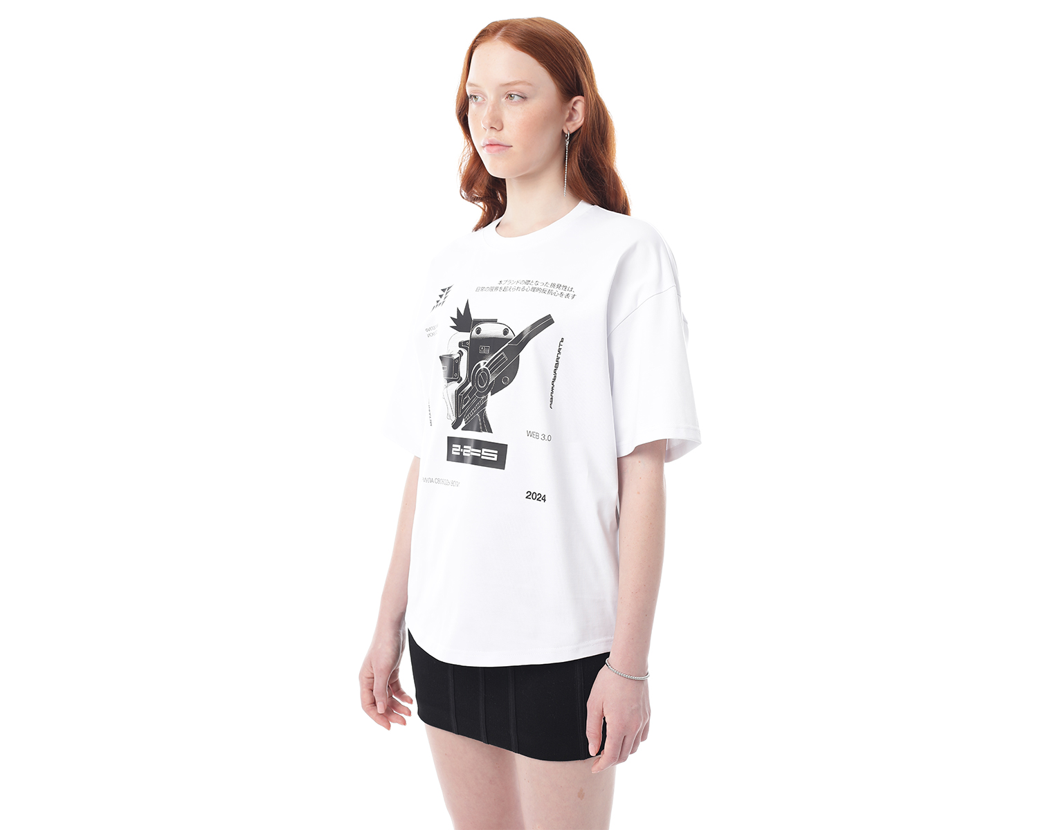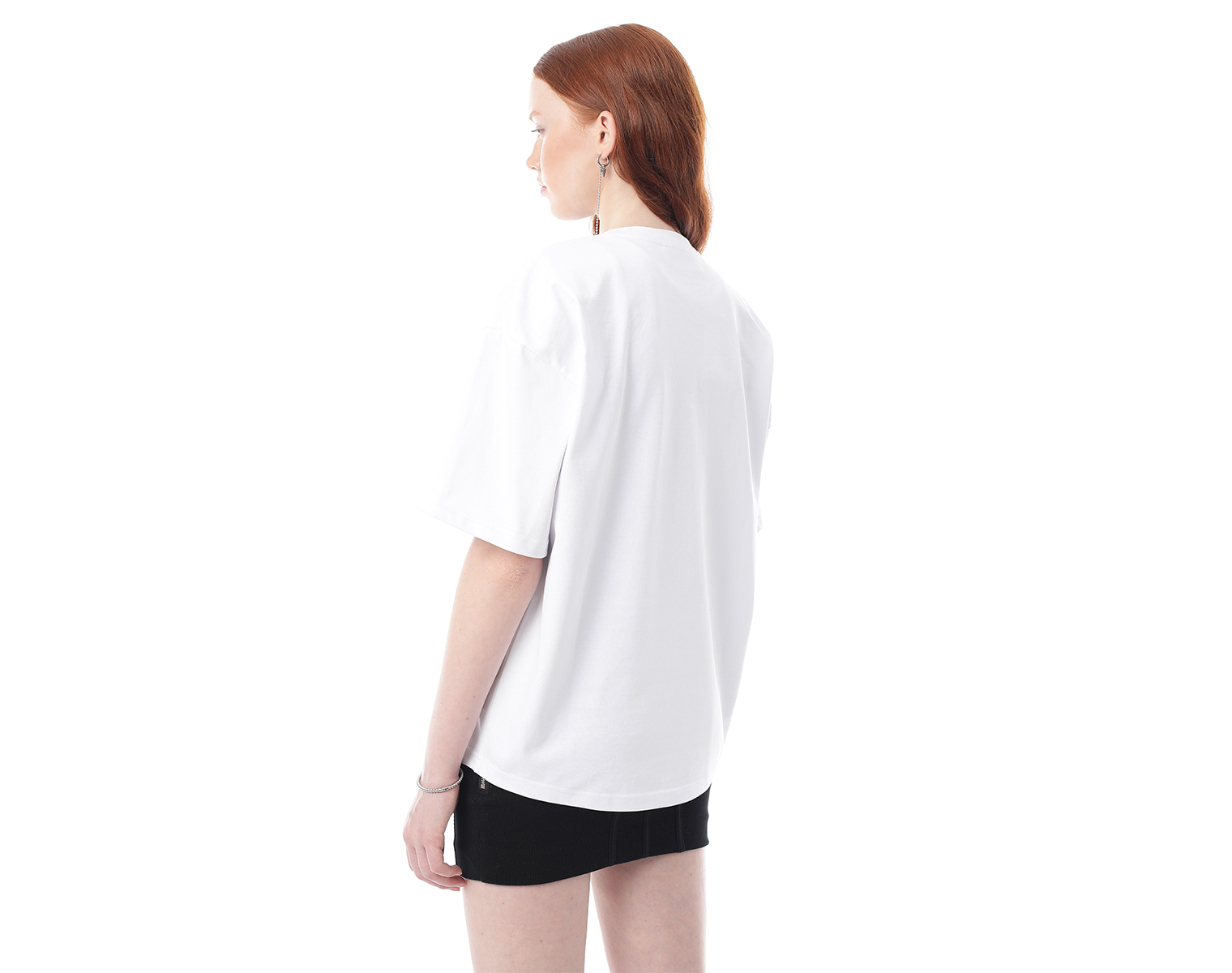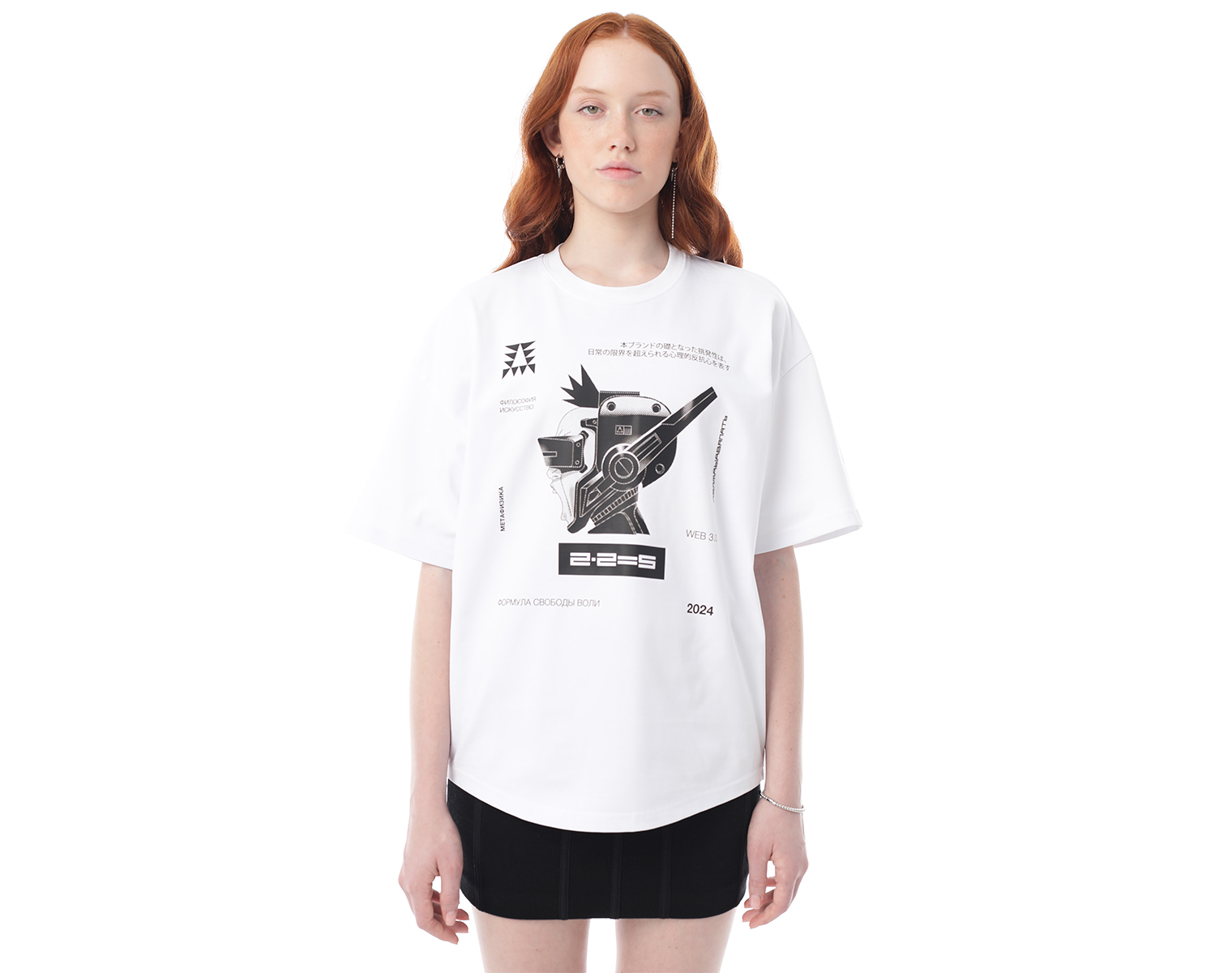 Футболка. Белая. Посадка оверсайз. 100% хлопок, плотность 180 грамм. Модель декорирована печатью в технике DTF.