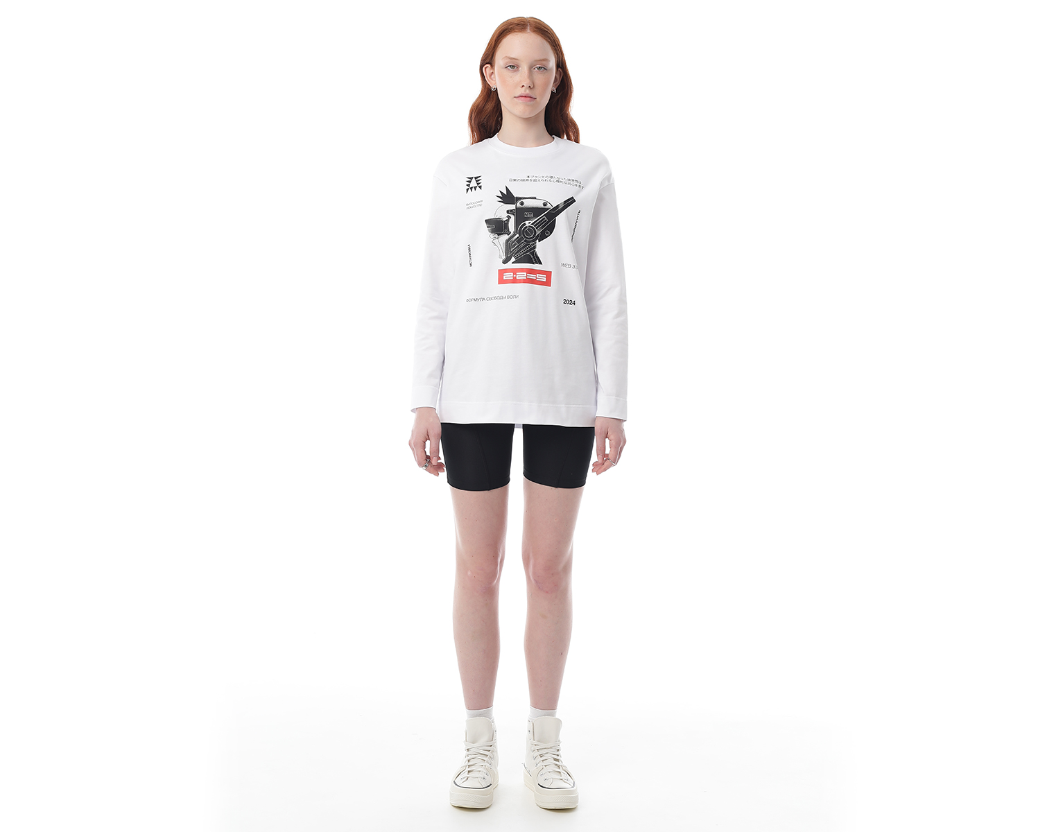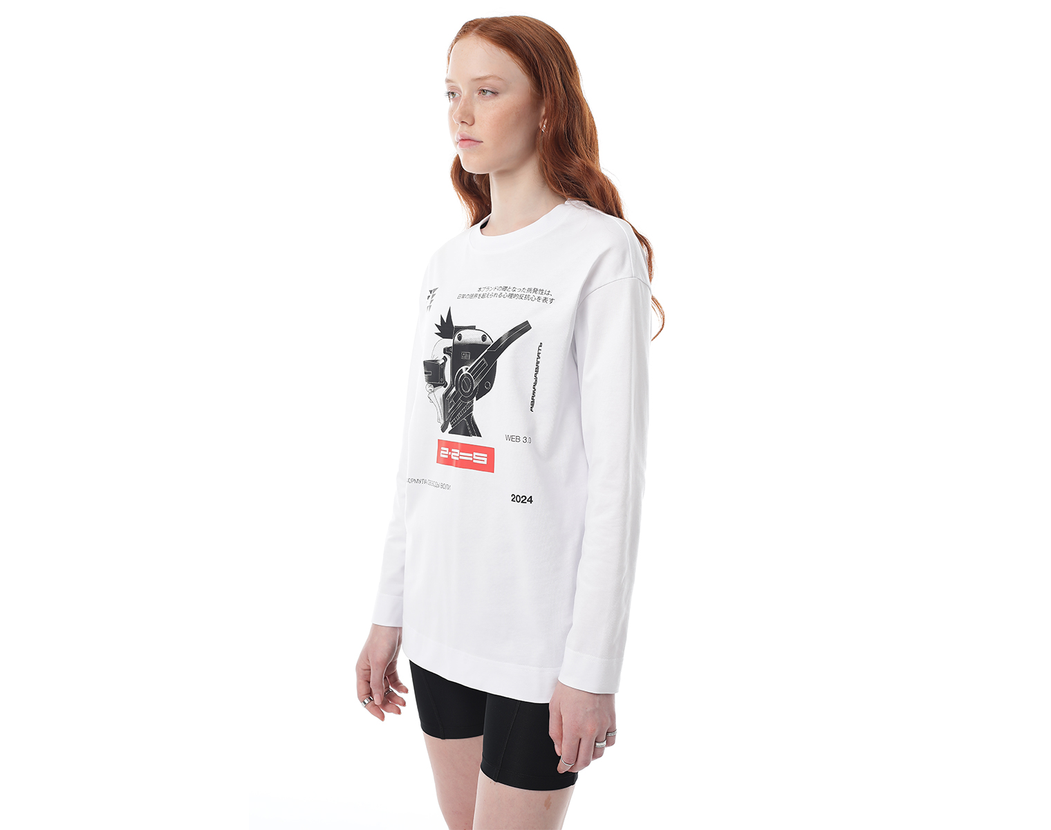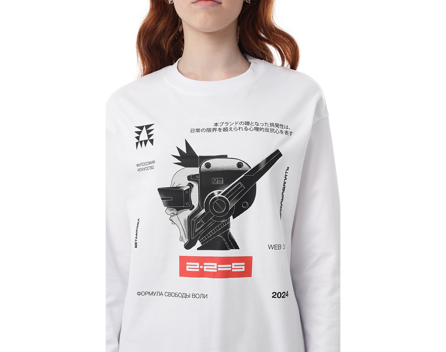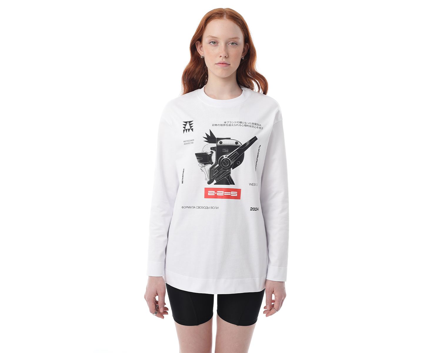 Лонгслив. Белый. Мидлфит. 100% хлопок, плотность 200 грамм. Модель декорирована печатью в технике DTF.