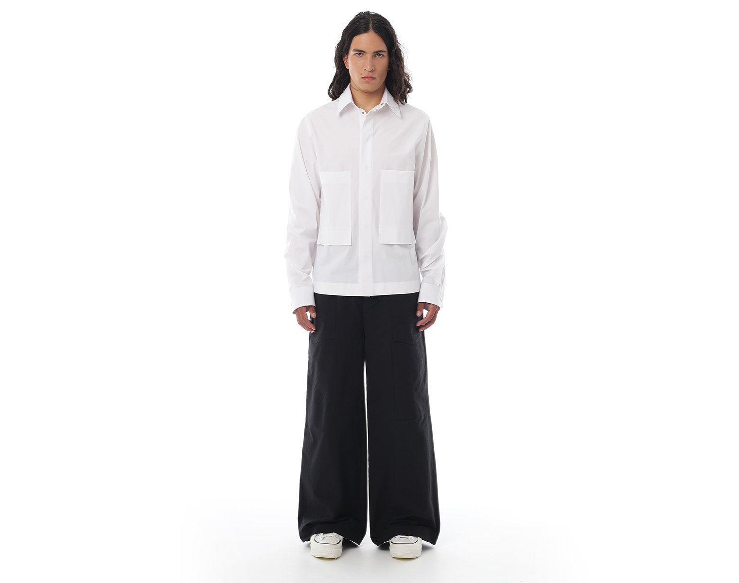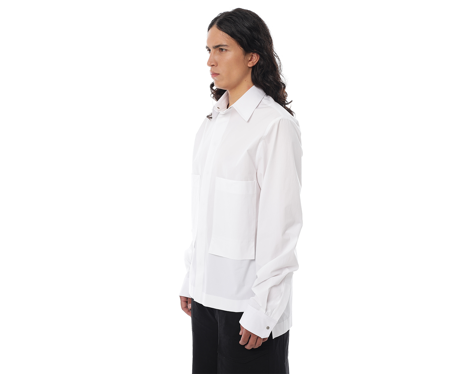 Рубашка с длинными рукавами на манжете и нагрудными карманами. Белая. Мидлфит. Модель декорирована печатью в технике "DTF". Состав: хлопок 97 % спандекс 3% 105 грамм.