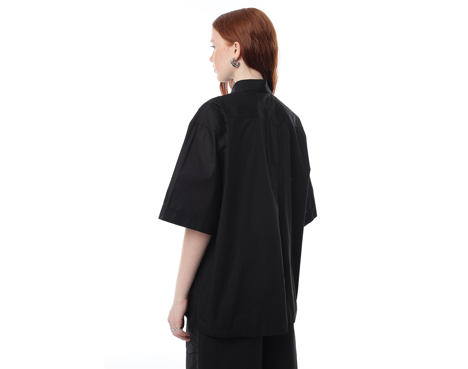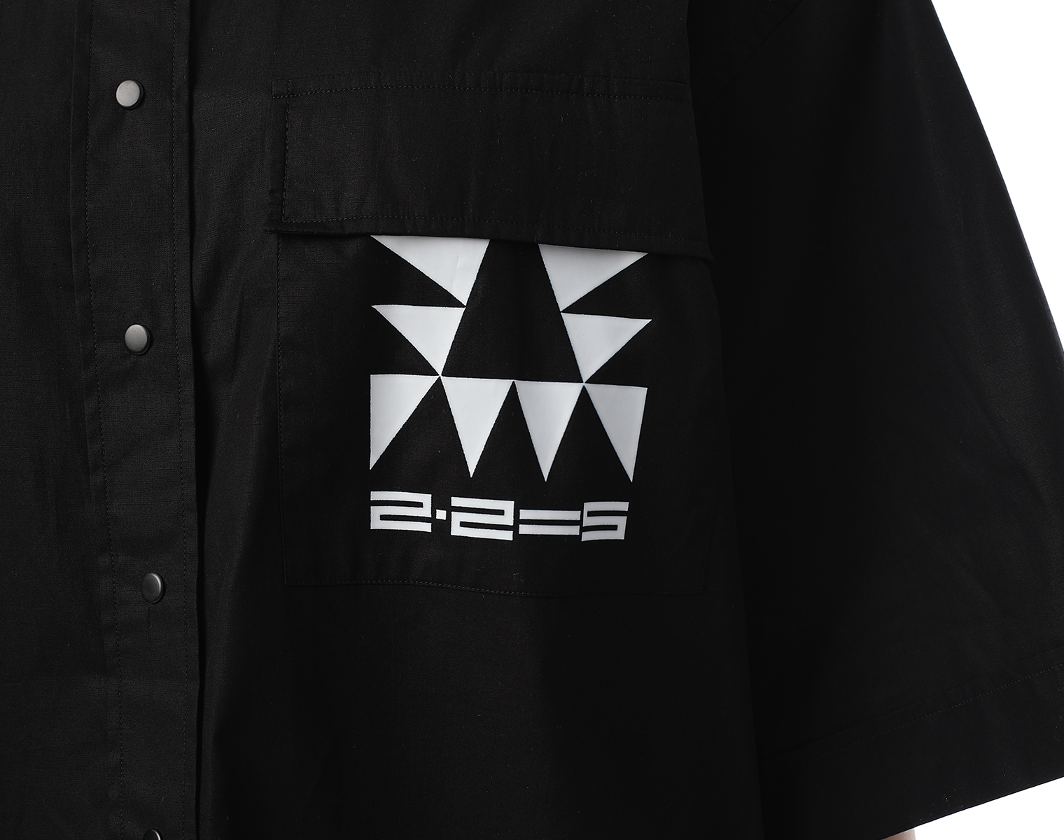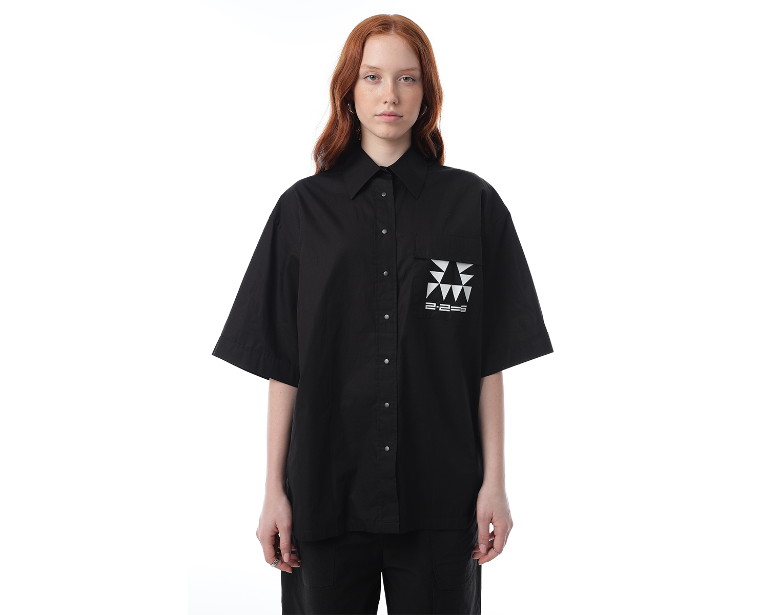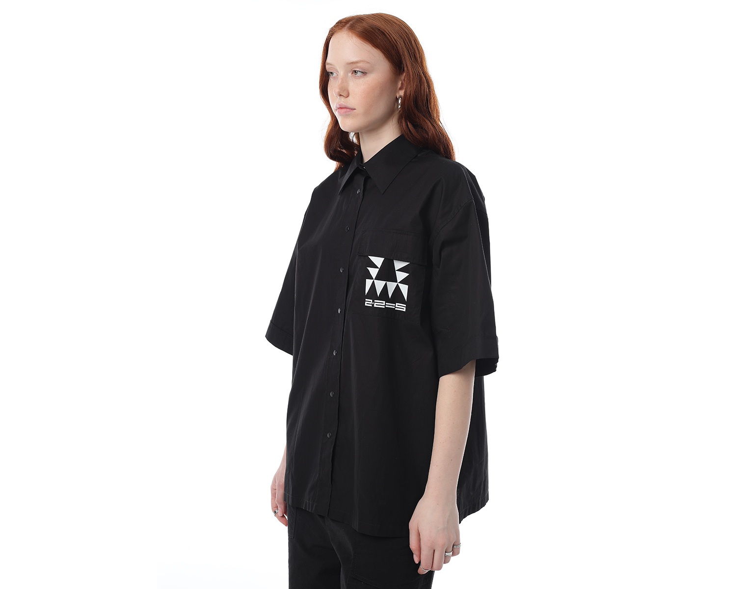 Рубашка с коротким рукавом с нагрудным карманом. Посадка оверсайз. Черная. Модель декорирована печатью в технике "DTF". Состав: хлопок 97 % спандекс 3% 105 грамм.