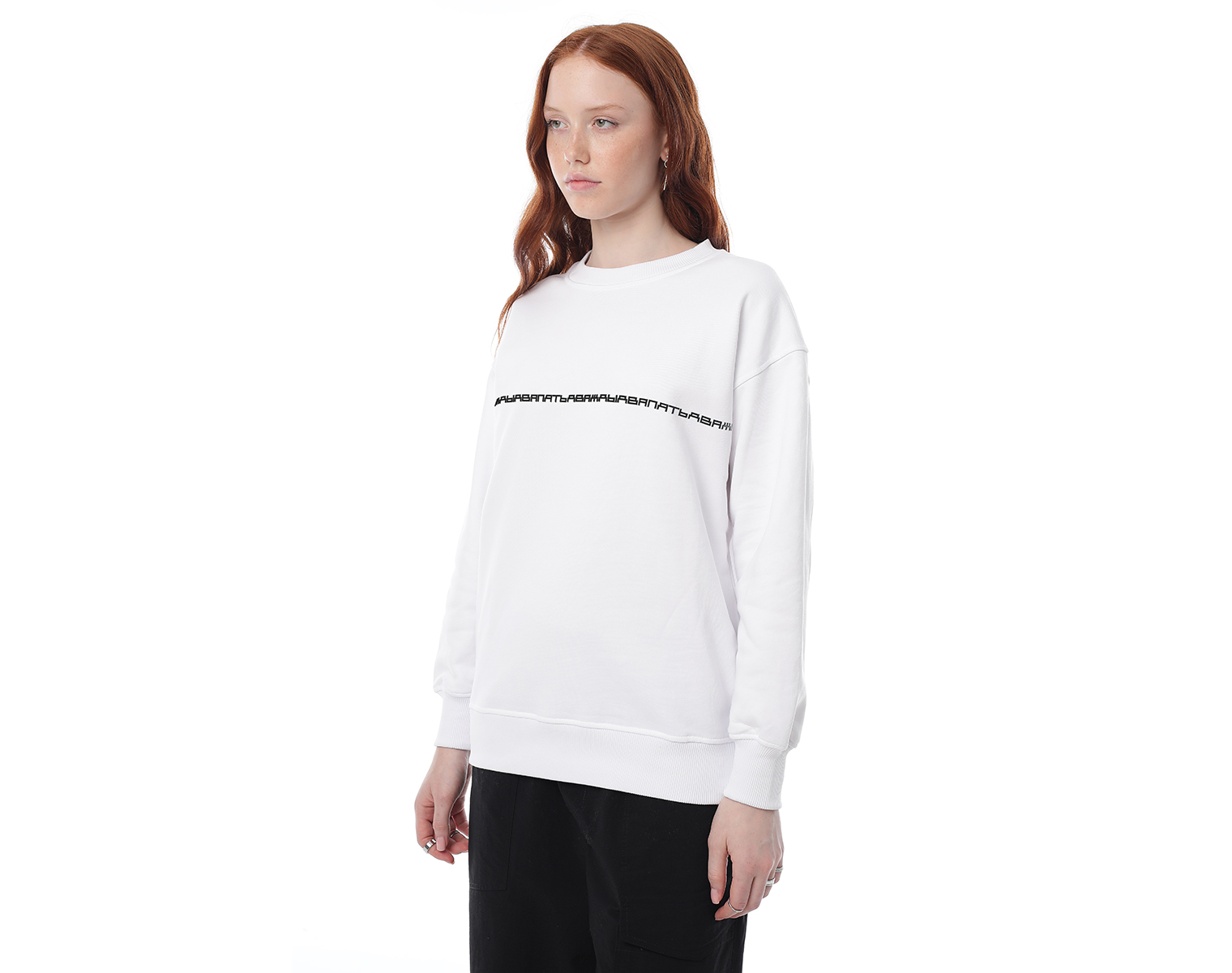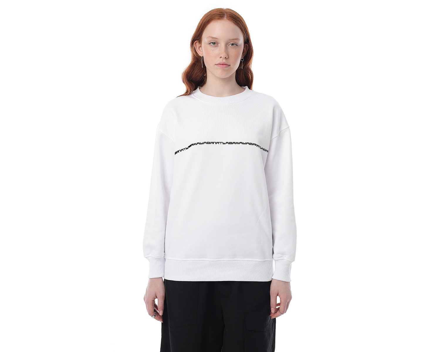 Свитшот. Бледно-голубой. Посадка мидлфит. Футер 100% хлопок, плотность 350 грамм. Объемный принт "дваждыдвапять" в технике высоко-рельефной печати flextran.