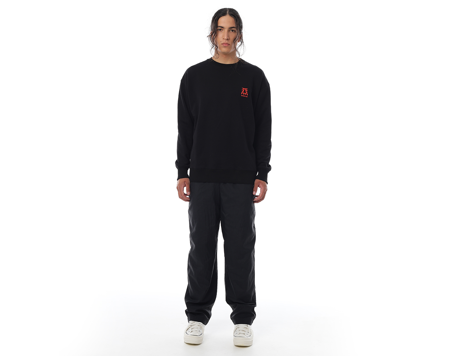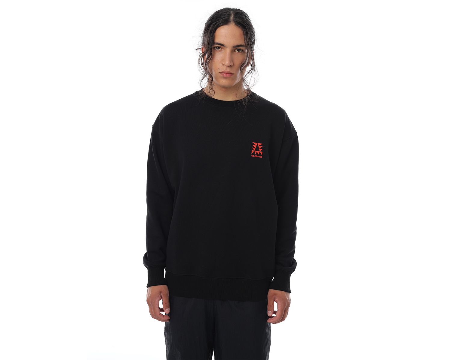 Свитшот. Черный. Посадка мидлфит. Футер 100% хлопок, плотность 350 грамм. Объемный принт "Д" в технике высоко-рельефной печати flextran.