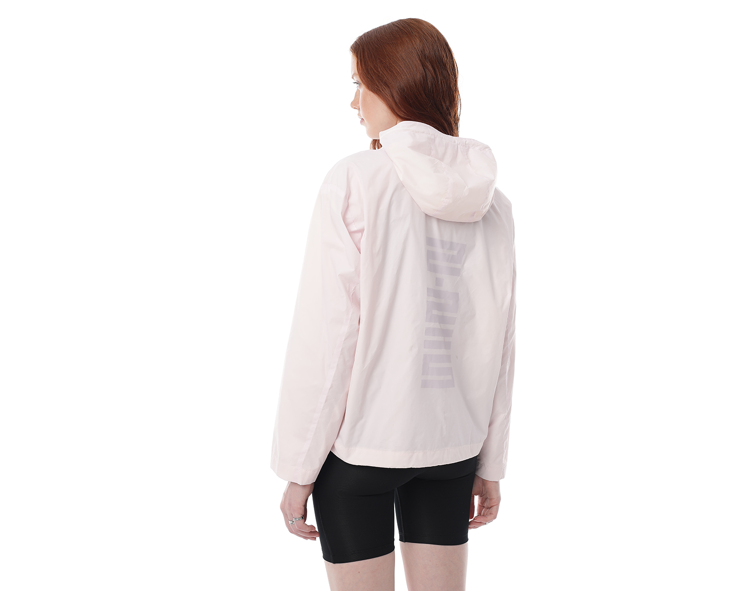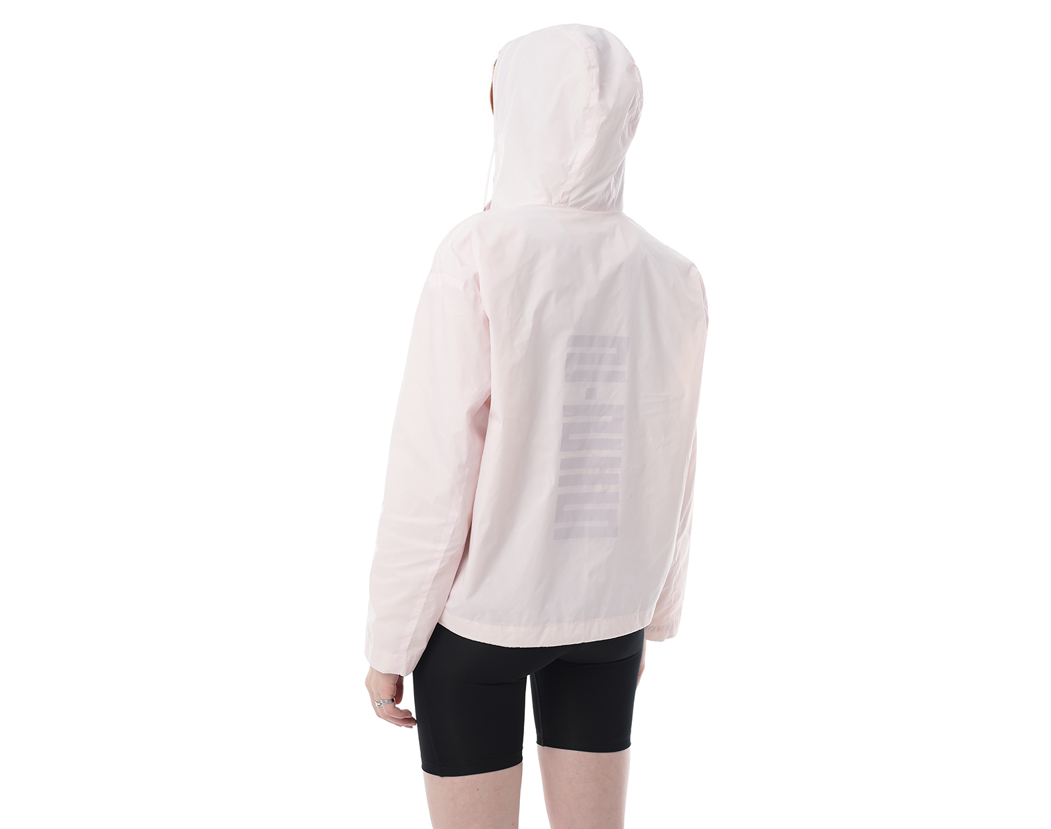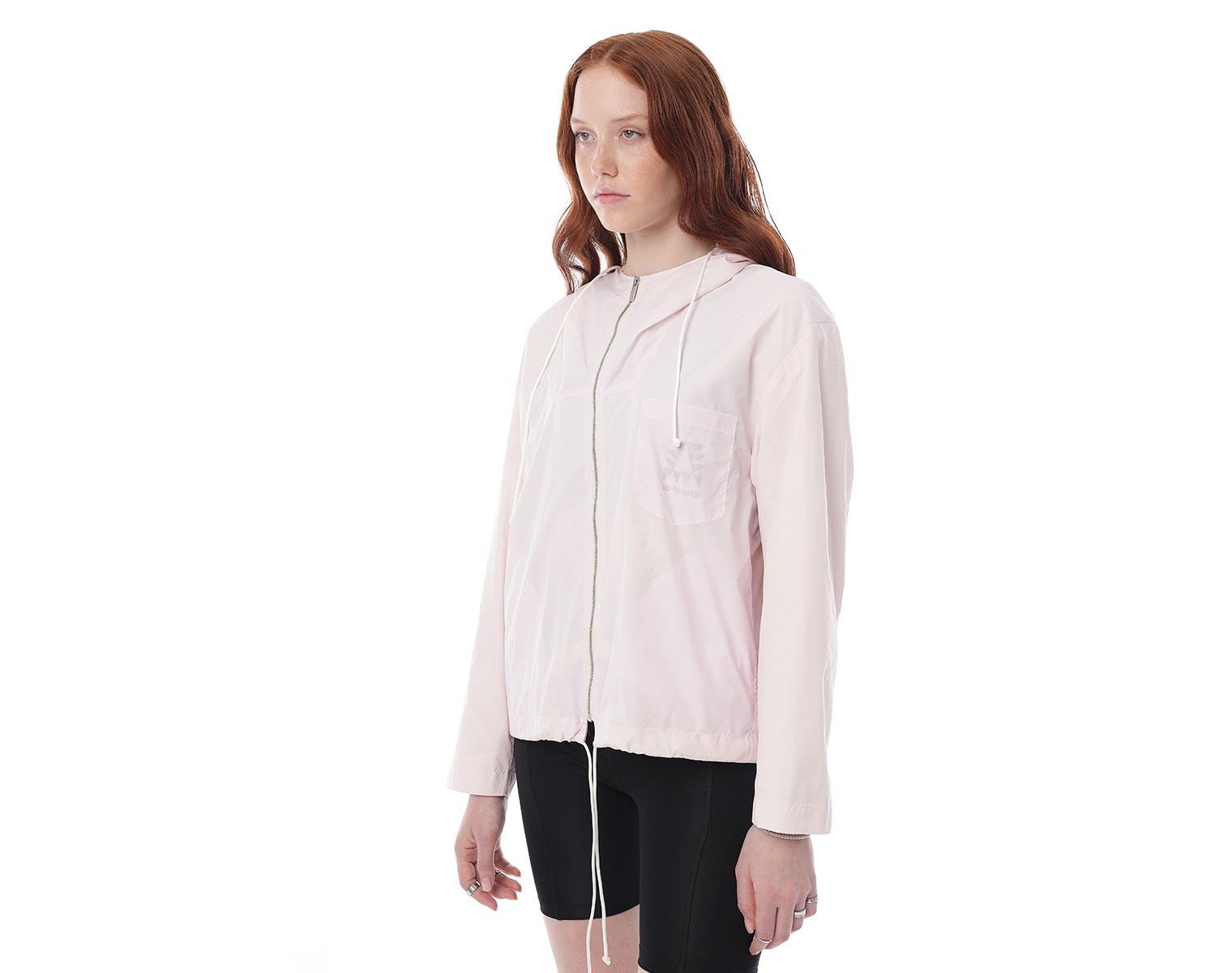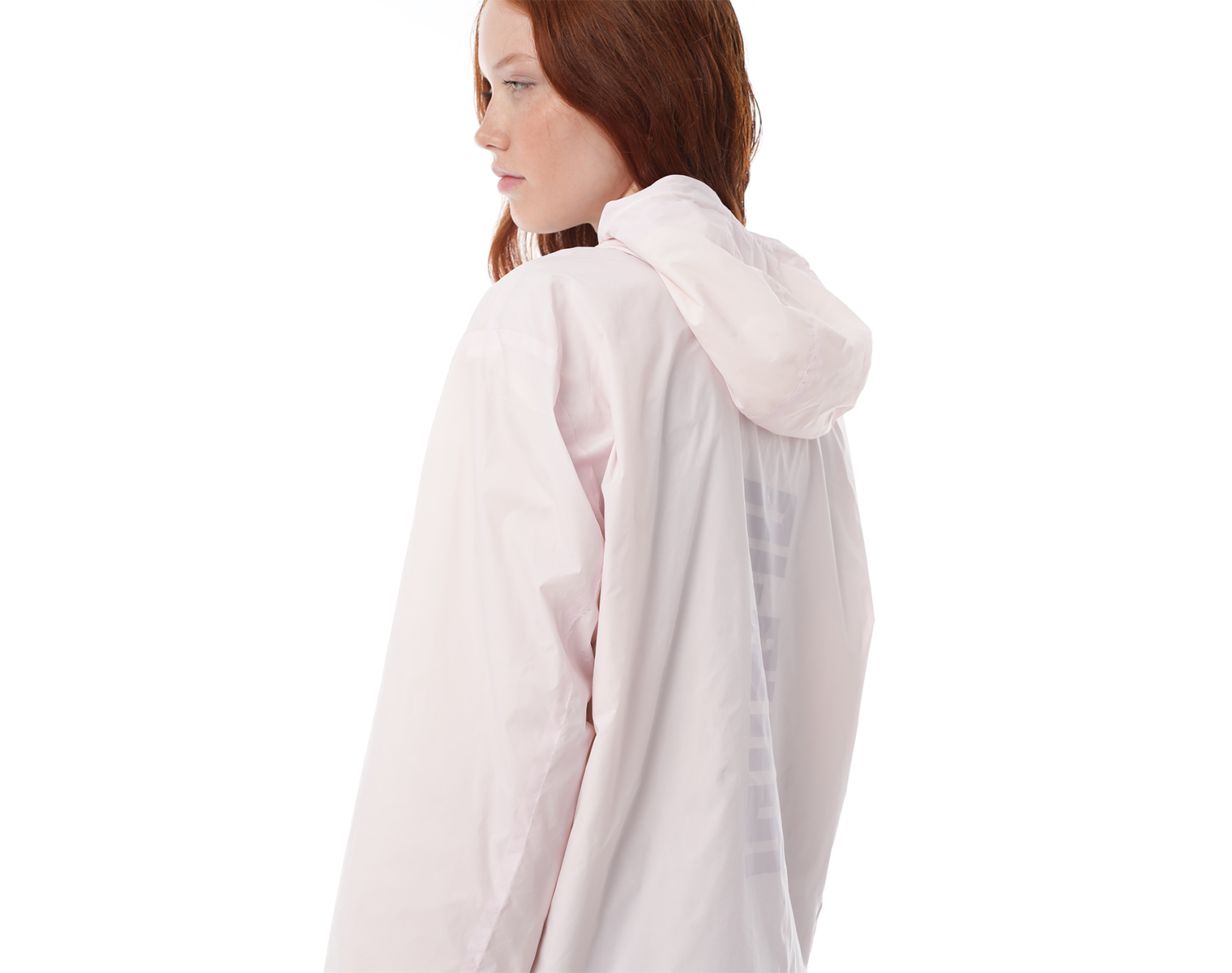 Ветровка на подкладе с капюшоном на молнии. Мидлфит. Бледно-голубая. Модель декорирована печатью в технике "шелкография". Состав ткани верха: 100% нейлон; состав подкладочной ткани: 40% лиоцель, 35% нейлон, 25% купро.